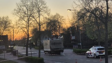 Vrachtwagen met vaten gedumpt midden op drukke weg in Echt